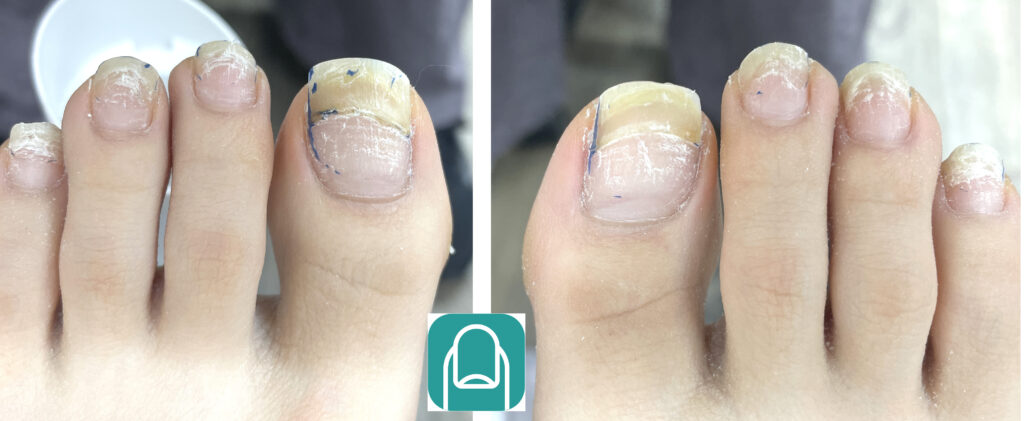 また、この亀裂はすでに剥離してしまっていますので、ある程度の所にきましたら、爪がポロっと取れる可能性が高いかな、、、という状態です。